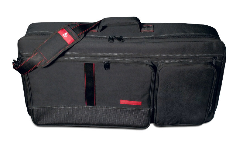 Revamped and restyled, our new Gigskinz line features a sleek urban look that is sure to turn heads. Solid black with touches of red accents, the new Gigskinz line radiates high end luxury at a value price. All bags feature GS monogram patterned interior lining, sleek black metal hardware and red accented seat-belt style shoulder straps, pocket details and interior straps. A semi-hard lined bag body and extra large foam-lined storage pockets round out the deal.