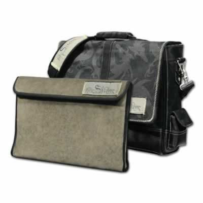 DGCB15Messenger Laptop Bag * Removable 15" plush laptop sleeve* External cellphone pocket* Pen/Pencil and accessory pockets* External document pocket* Industrial zippers and rugged metal hardware* Olive colored plush interior to protect your gear* Textured skid proof bottom* Water repellent dragon pattern fabric