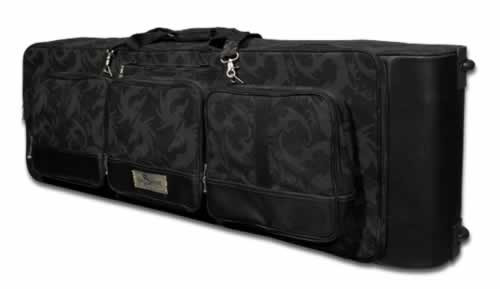DGK776 Key Keyboard Bag w/Wheels * Low profile wheels* Extra protection padding on wheel side of bag* Three exterior accessory pockets* Textured skid proof bottom* Water repellent dragon pattern fabric* Olive colored plush interior to protect your gear* Padded interior, pockets and shoulder strap* Adjustable internal strapsInterior dimensions 52" x 17" x 7"