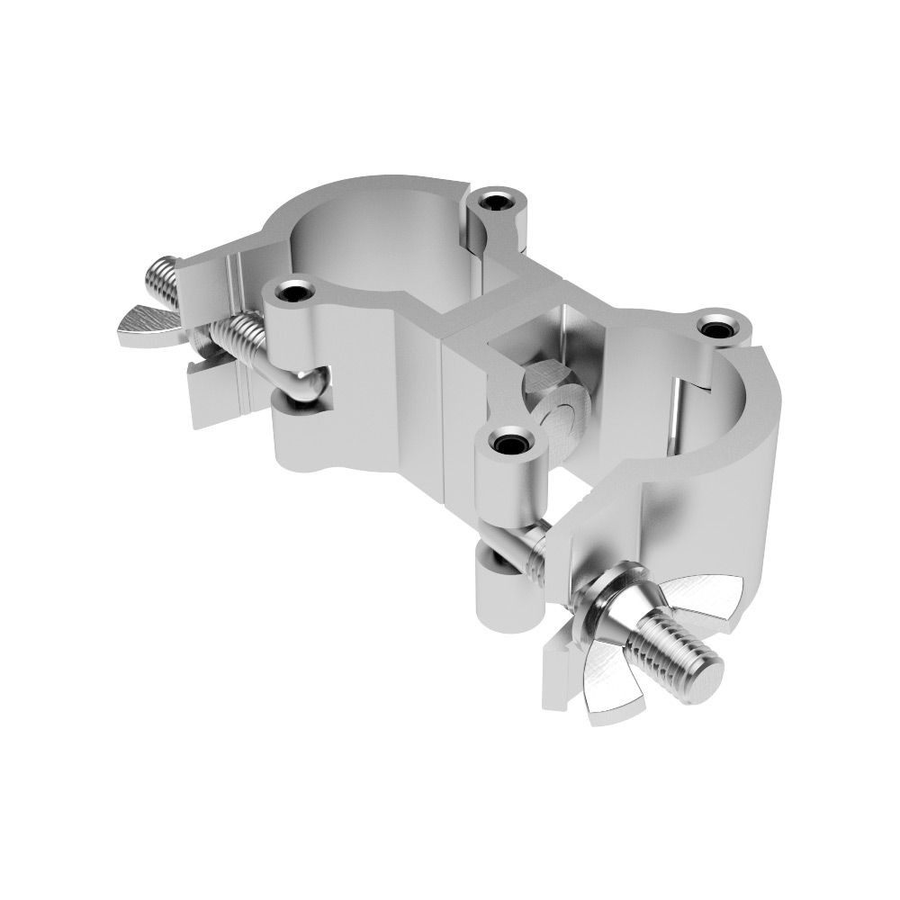 The Global Truss Mini 360 F14/SWIVEL is a light duty swivel clamp, capable of holding up to 22lbs of weight. The clamp is a wrap-around clamp that can handle tube sizes between 18mm and 20mm. It will also wrap around the diagonal cross bars of F32, F33, and F34 trussing.