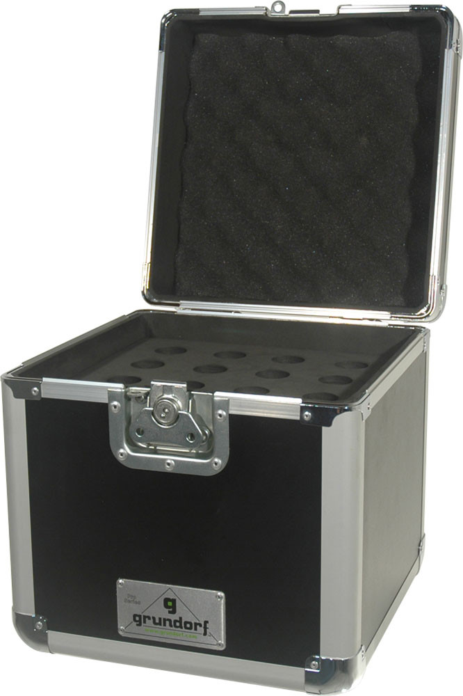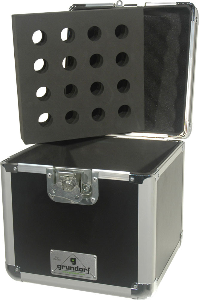 This Grundorf Pro Series Mic Case offers superb protection for your microphones. The inside lid and bottom of the case are padded with 1" thick convoluted foam. The mics rest on a 2" thick foam block insert equipped with 1.25" holes accommodating 16 microphones. The foam mic insert is completely removable exposing a storage area in the bottom of the case.