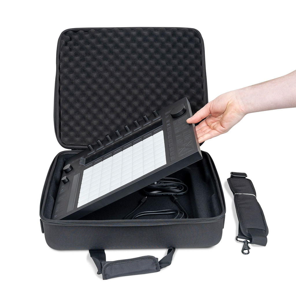 Made from a lightweight molded EVA exterior shell and snug-fit foam, it features a rugged water-resistant polyester exterior as an added layer of protection and safekeeping. The Headliner Pro-Fit' Case for Push 3 also comes with removable egg-crate foam under the lid that will ensure an extra layer of safety for all knobs, buttons. A comfortable carrying handle and included shoulder strap let you take your gear on-the-go with protection and style.