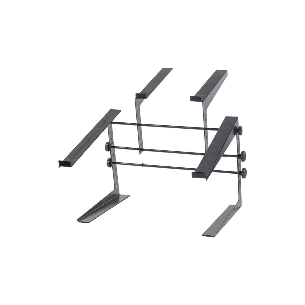 • Strong and durable stand for two devices such as DJ controller and a laptop, or small keyboard and pad controllers.