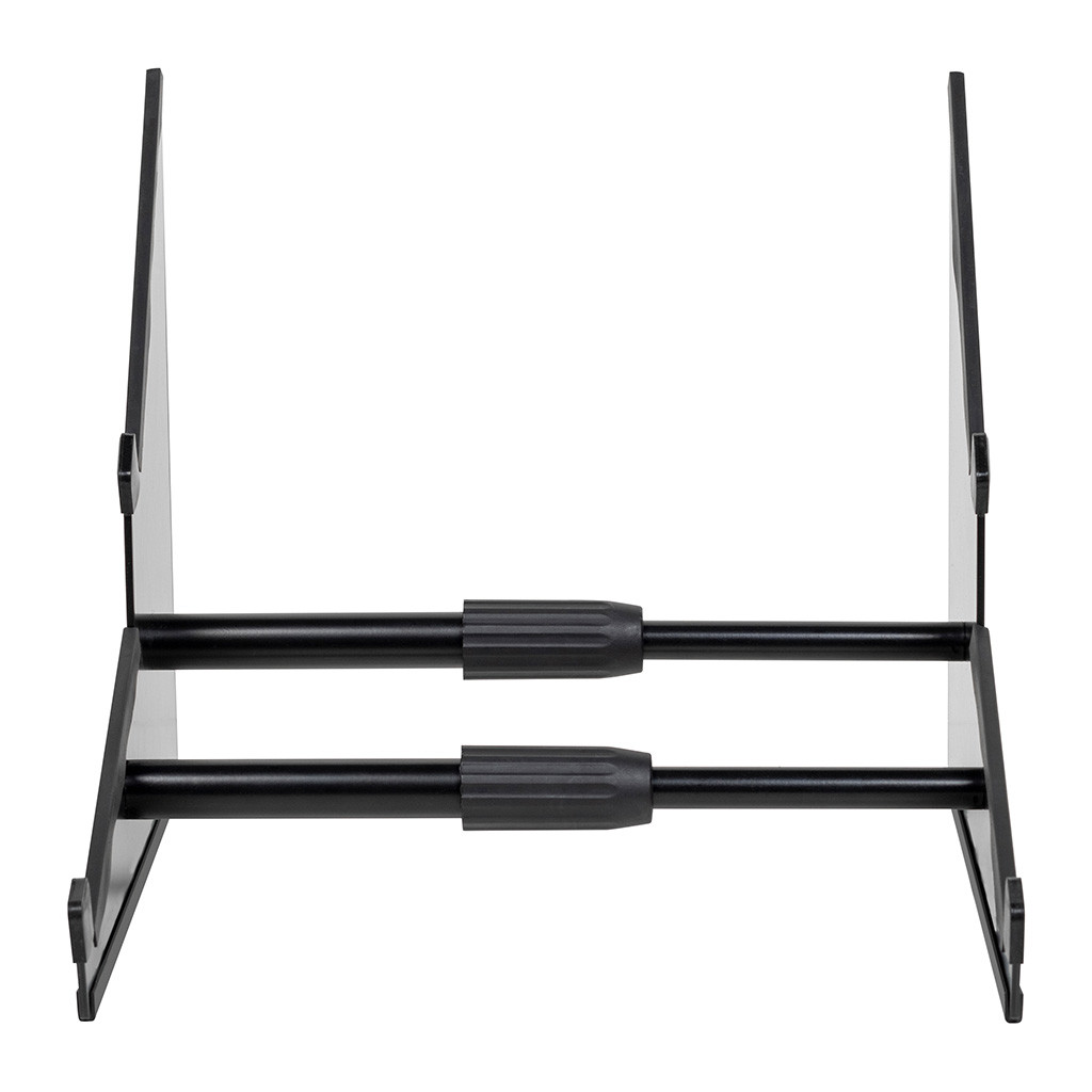 The Headliner 2-Tier Desktop Synth Stand is adjustable in width from 7.3" to 11.5" and fits a variety of devices from Roland, Korg, Elektron, and more (partial list below). It is made from solid steel and includes non-slip rubber strips for added stability.