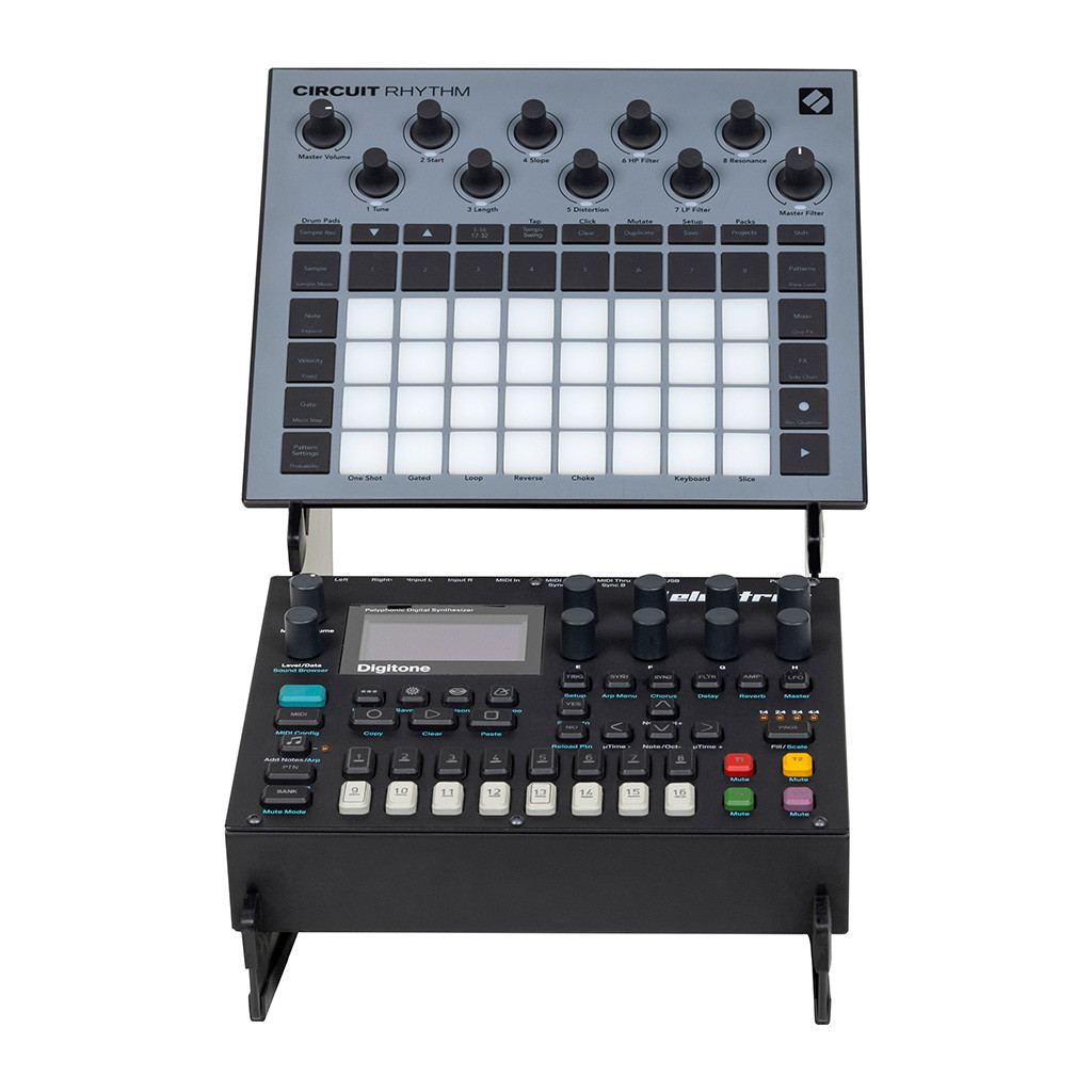 The Headliner 2-Tier Desktop Synth Stand was designed to improve your workflow and help you stay organized while fitting more gear on your production desk. It fits two compact devices like synthesizers, controllers, drum machines, and effects modules. The angled design makes it easier to reach knobs and view LCD screens.