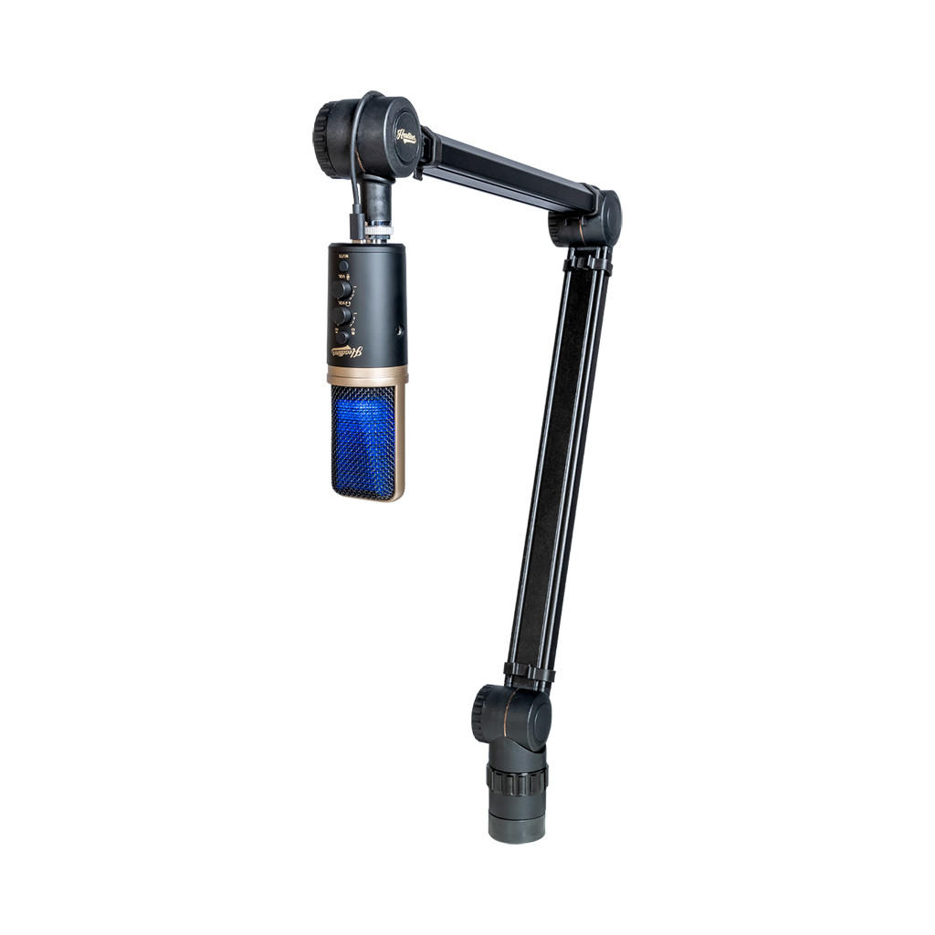 The Headliner Sierra is compatible with a wide variety of popular microphones, including the Shure SM7B, Blue Yeti, Rode NT1-A, and more. Adjusting the tension to adapt to various microphone weights is a breeze, thanks to the tension adjustment wheel at the base of the stand. The arm features a 3/8" mic connector with 5/8" adapter for maximum compatibility.