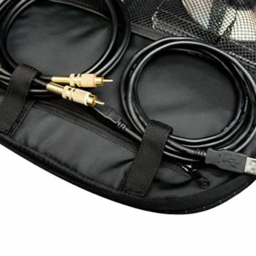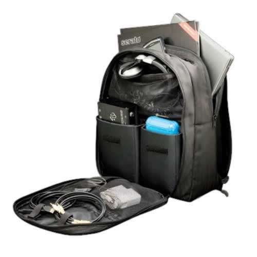 FEATURES:• Outer Shell - Weather proof ballistic nylon offers extremely durable ripstop protection for your gear. • Laptop Compartment - The internal fully padded laptop compartment protects all sizes up tp 17 inches. Adjustable elastic retaining Velcro straps will keep your laptop snug. • Record Compartment - Carry your Serato control vinyl plus 20 extra Lp's or a large CD book in this fully padded compartment. • Serato SL Amp Protection - This EVA foam padded pocket is exclusively designed to protect the Serato Scratch Live Amp. • Needle Case - Padded pocket to stash your needle case. • Headphones/Adapter Storage - Mesh pocket designed to hold your headphones, laptop adapters, SL1 power source, connectors, etc. • Easy Access Pocket - Grab your keys, phone and other belongings from this hidden easy access pocket. • Shell Pocket - Exterior pocket for holding your favorite magazines.