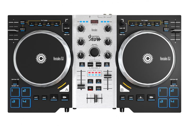 A new design for the Xtra Large 2-deck DJ controller! With large jog wheels similar to many DJ CD players, you get full control, and mechanical pressure detection gives you intuitive scratching! The contactless sensor lets you control the mix from above, without even touching the device, with 1 ft/30 cm of range DJ CONTROL AIR+ converts the vertical distance to your hand into a MIDI command.