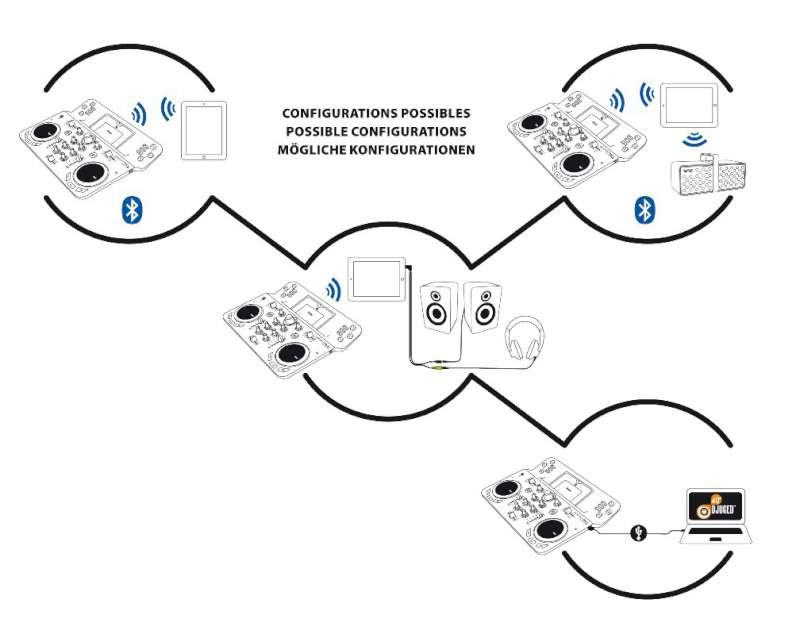 The wireless DJ controller specially designed for iPad, totally wireless and rechargeable! Control your iPad wirelessly with built-in Bluetooth 3.0 wireless technology. Ultra-fast connection, with no wires between the controller and the iPad. Move your iPad up to 10 meters away from the controller.