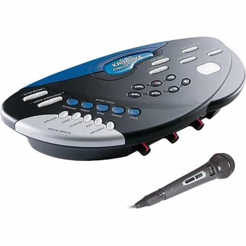 A handheld microphone is included and a second microphone input accommodates another microphone for duet karaoke. Voice Remover enables users to sing over their existing audio CDs and take advantage of some of the voice effects such as Robot, Male, Female and Kid. Additional music effects include Echo, Pitch and Tempo adjustment. The Karaoke Console will provide hours of entertainment in the home and small venue.