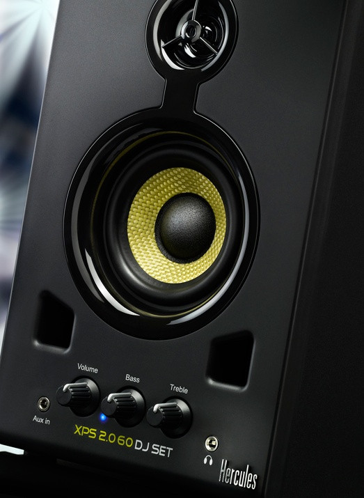 Perfect for leisure DJing, to create your first home studio. 3-inch woofers with a Kevlar membrane for homogeneous, precise sound. 2 ports per satellite, for powerful bass response. Wooden subwoofer, crafted of 9 mm-thick MDF.