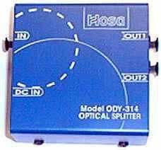 Hosa Optical Data Splitter, with Optical in, two optical out. Works for 2 channel S/DIF or 8 channel "Lightpipe" (Alesis ADAT format).