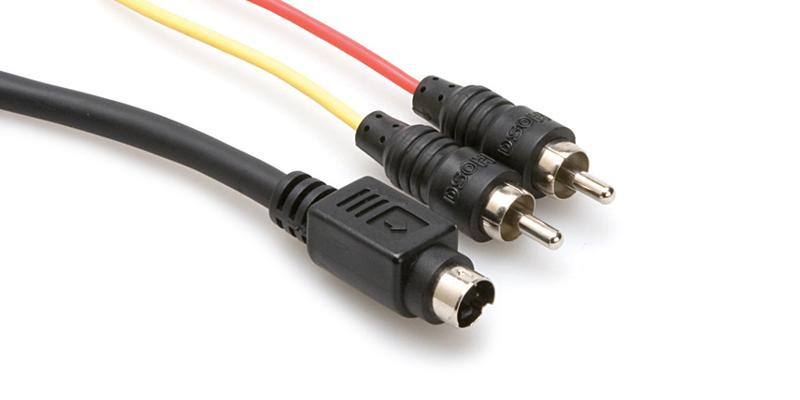 This cable is designed to split an S-Video signal into separate luminance and chrominance signals. Leads are color-coded yellow for luminance and red for chrominance.
