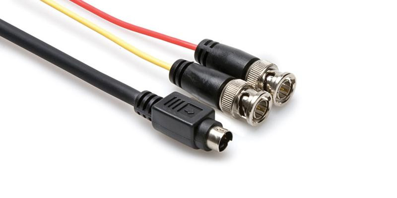 This cable is designed to split an S-Video signal into separate luminance and chrominance signals. Leads are color-coded yellow for luminance and red for chrominance.