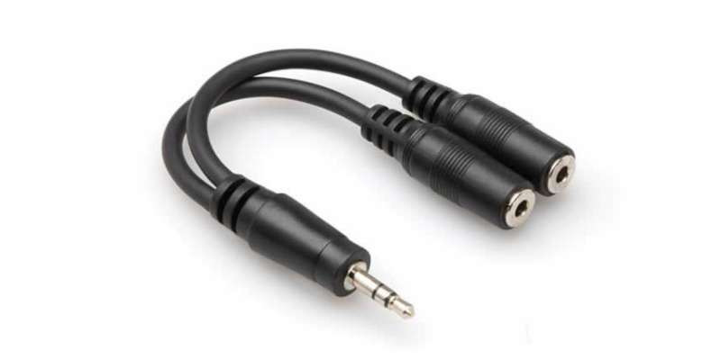 Hosa Stereo 3.5mm phone (MALE) to Two Stereo 3.5mm (Female) Y-Cable. This Y-Cable is 6 inches long.