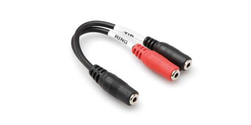 Stereo 3.5mm (1/8") Female to Two Mono 3.5mm (1/8") Females, Length: 6 inches.