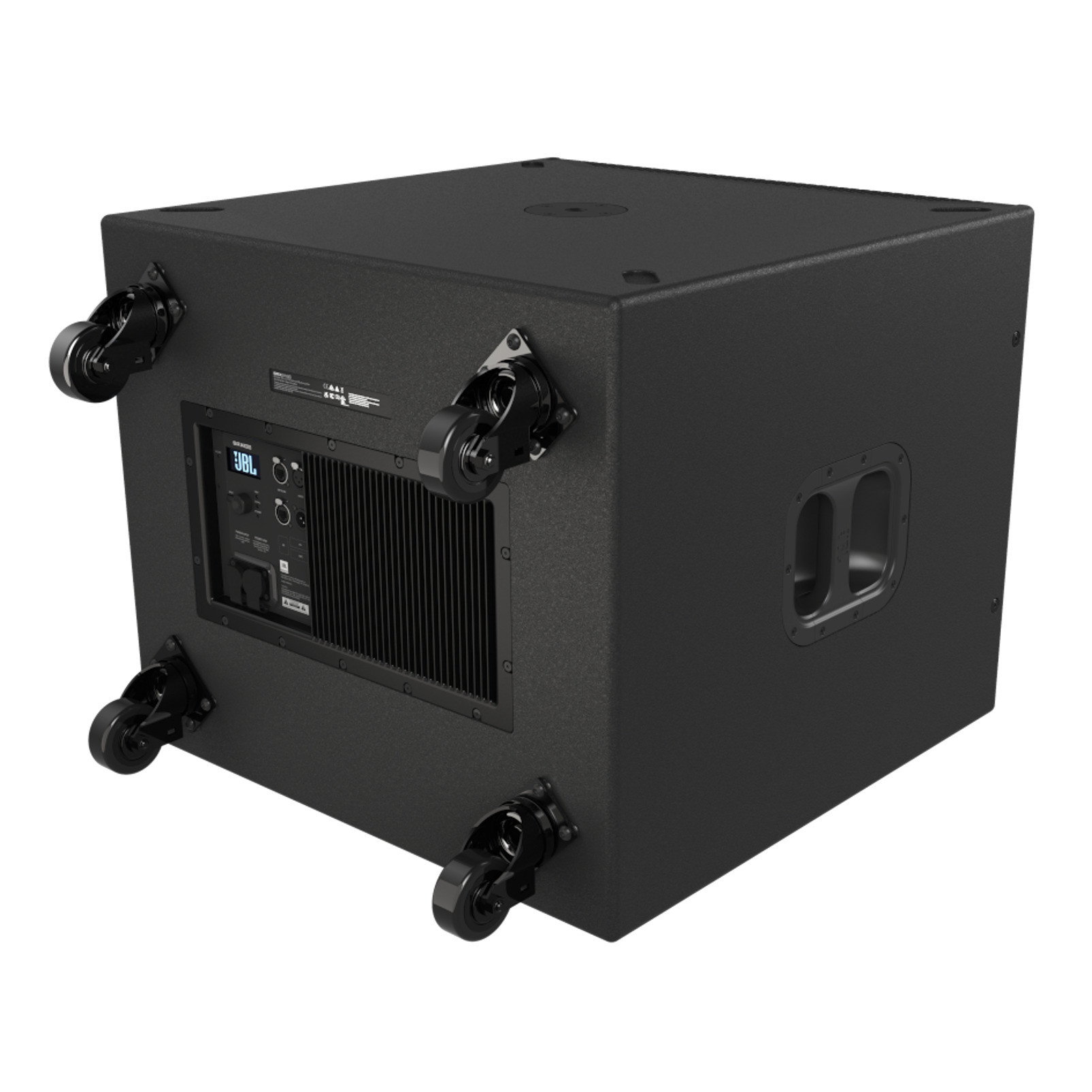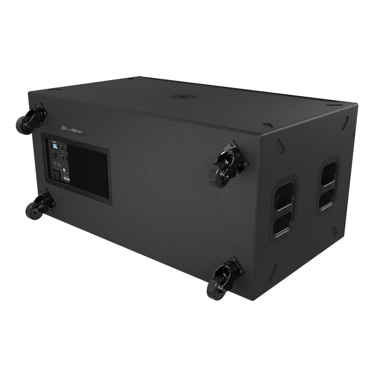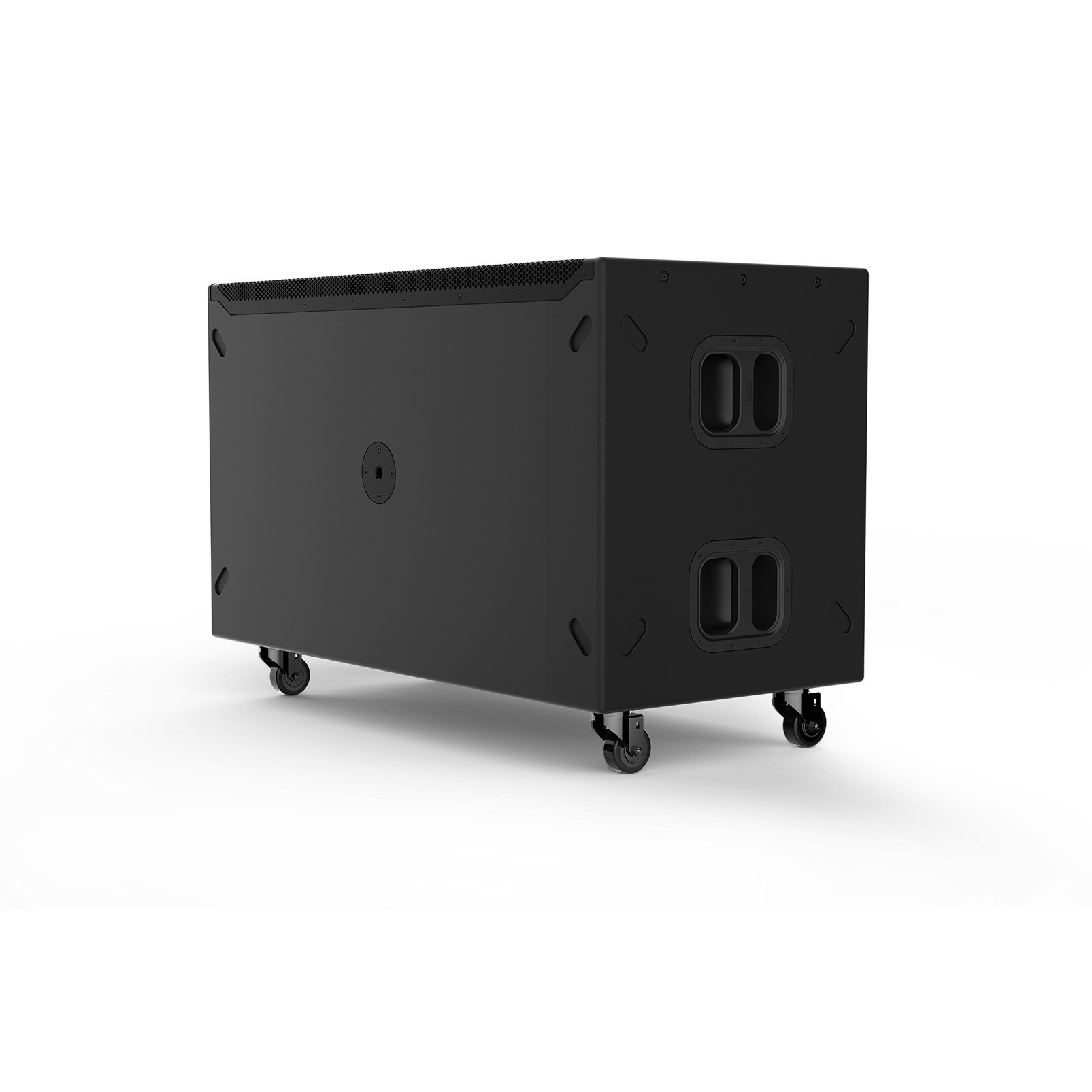 The housing and wheels are black for a discreet look even in situations where the rear of the product is facing the audience, as in cardioid subwoofer stacks.