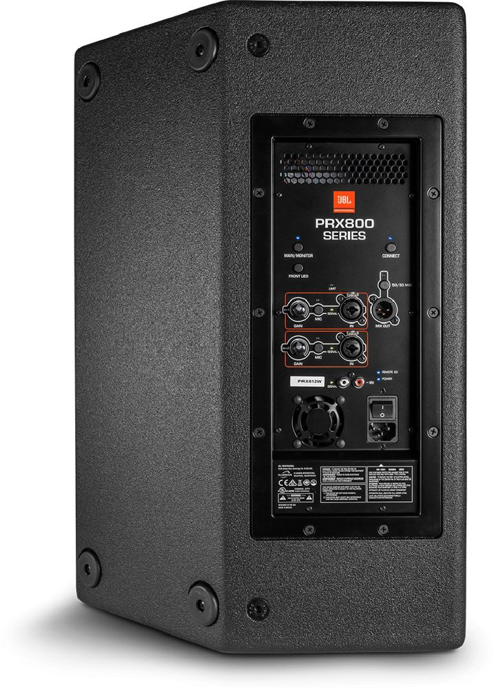 JBL PRX812W Applications PRX812W is a compact and versatile speaker in the PRX800 Series with remote Wi-Fi control of onboard DSP EQ parameters. It has been designed to deliver maximum performance for its weight and size as both a stage monitor and a front of house main PA. Two user selectable EQ settings are provided to optimize the system for either application. With a dual socket pole mount the PRX812W is a perfect match with a PRX818XLFW subwoofer, offering a high performance self-powered sub/sat system.