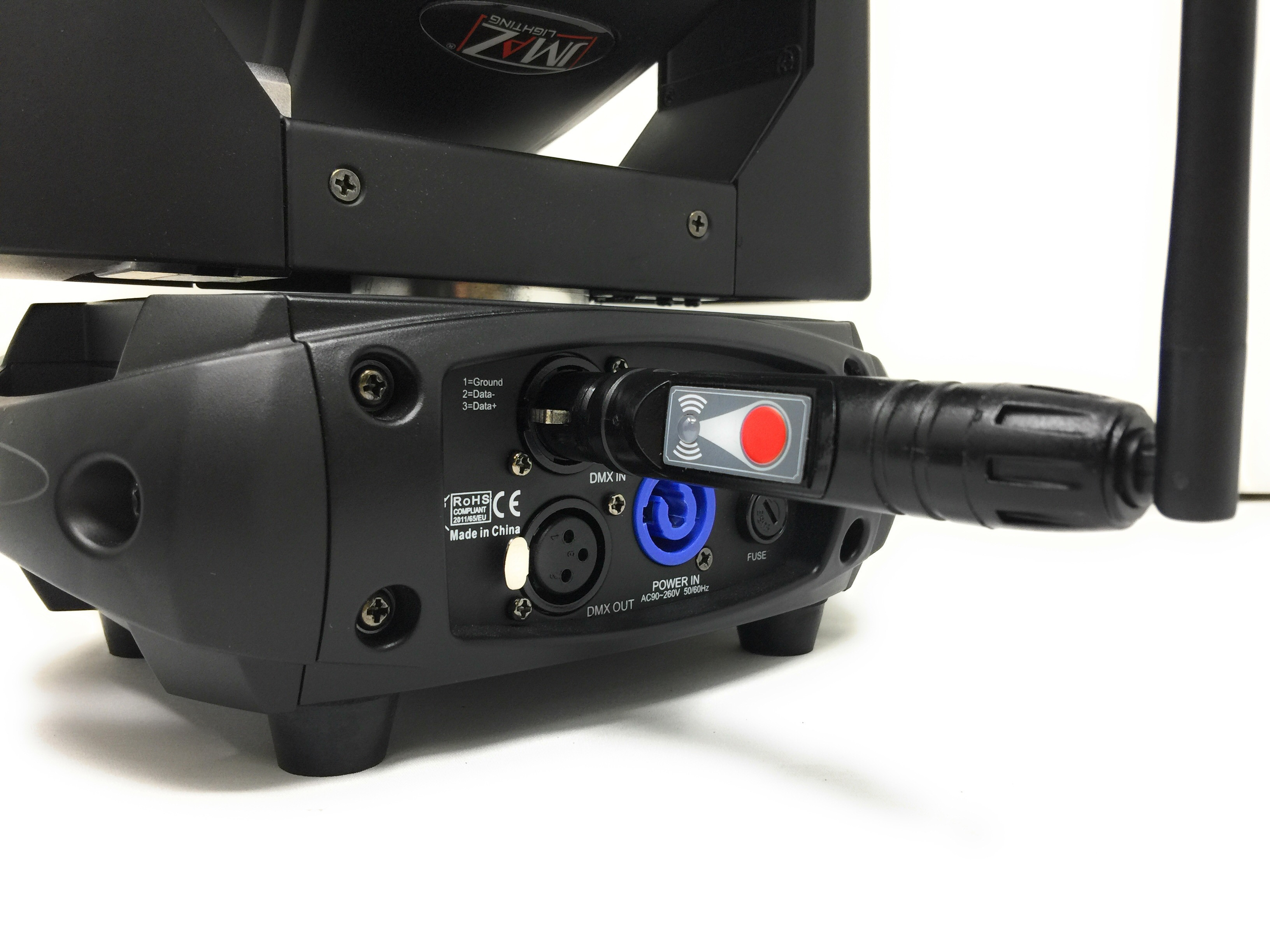 The JMAZ Wi-MAZ Wireless Transceiver is a compact wireless DMX transmitter/receiver which can control up to 7 universes.