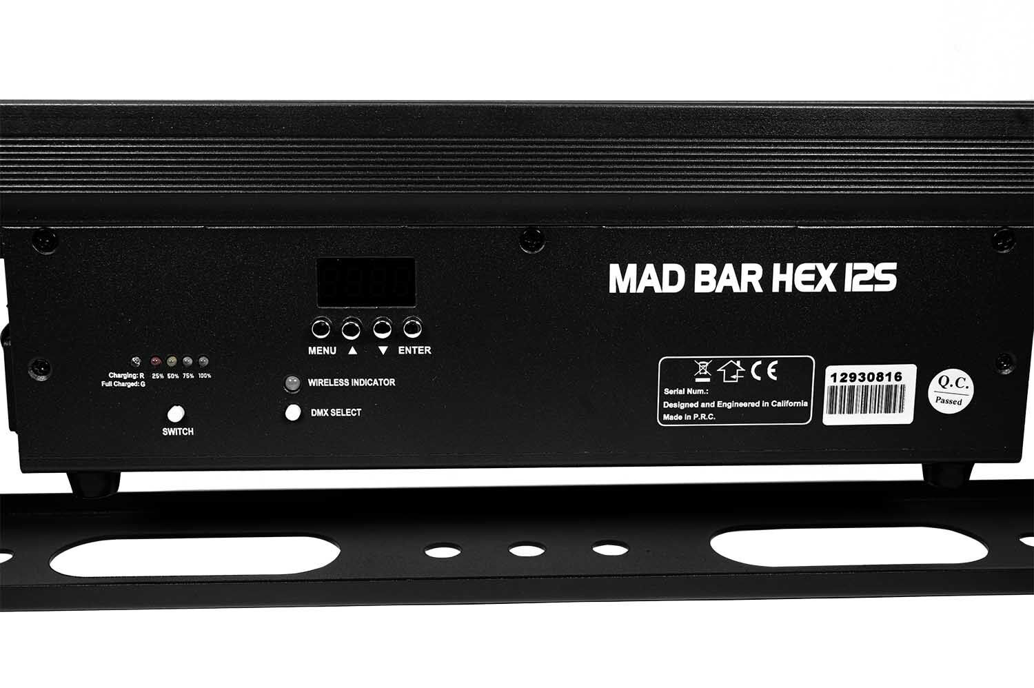 Revolutionizing the wash lighting category with the features and functionality the others just don't have, the MAD BAR HEX 12S is here! Engineered with the highest quality components and batteries, the MAD BAR HEX 12S is a battery-powered linear wash light featuring 12 HEX (RGBWA+UV) 12-watt LEDs. This fixture offers a 25 beam angle, pixel mapping capabilities, and an unbelievable 144-watts of output.
