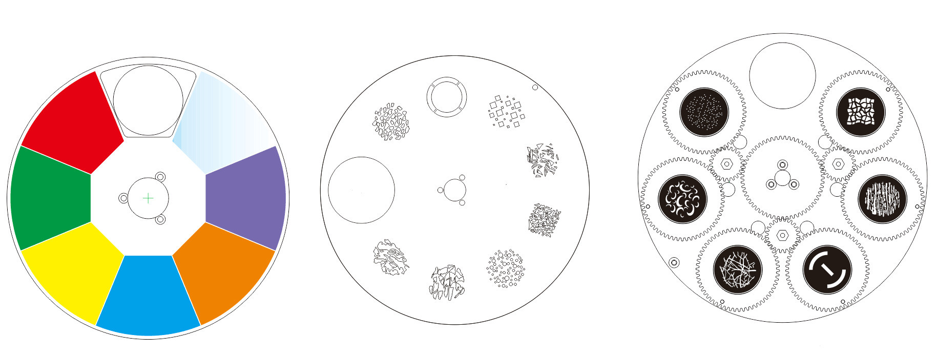 • 1 Rotation Gobo Wheel with 6 Gobos + White (Interchangeable)