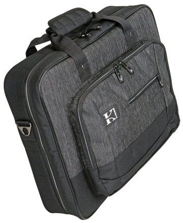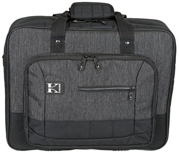 The Kaces Luxe series gig bags are designed to protect and transport your favorite keyboards, synthesizers, and sound gear in style. The KB1714 is designed to fit medium 25 note keyboards with a maximum interior size of 17.5 x 14 x 4. Constructed from a durable, water-resistant PVC-backed polyester fabric in a stunning two-tone heathered charcoal/black design, with dense, over-stuffed foam padding, a soft, fleece interior, and adjustable internal security straps, you can be sure your gear will arrive safe and sound and ready to rock.