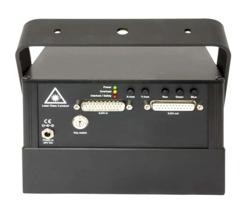 The very small housing (7.3/6.5/5.0 in) and the very low weight makes this unit very versatile: Just carry several Pure Micro units in your hand luggage to your laser shows all around the world! Of course the Pure Micro units respect the very latest safety regulations according to IEC-60825 - and even beyond those: The Xscan come standard with Advanced Scan Fail Safety.