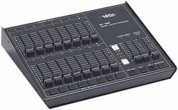 Eight control channels for two-scene or sixteen-channel single-scene operation. Deluxe features include dual-split dipless crossfaders, individual channel intensity indicators, individual channel bump buttons, user-programmable chase functions, tap-button chase-rate control, grand master control, blackout control, and NSI Micro-Plex control signal mic cable interface.