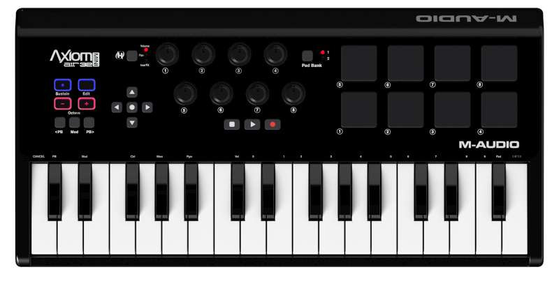Shatter barriers with the Axiom AIR Mini 32 from M-Audio. Uniting serious power and unmatched ease-of-use, the Axiom AIR Mini 32 is the ultimate tool for the mobile musician. This compact controller provides 32 great-feeling mini keys with plenty of room to play.
