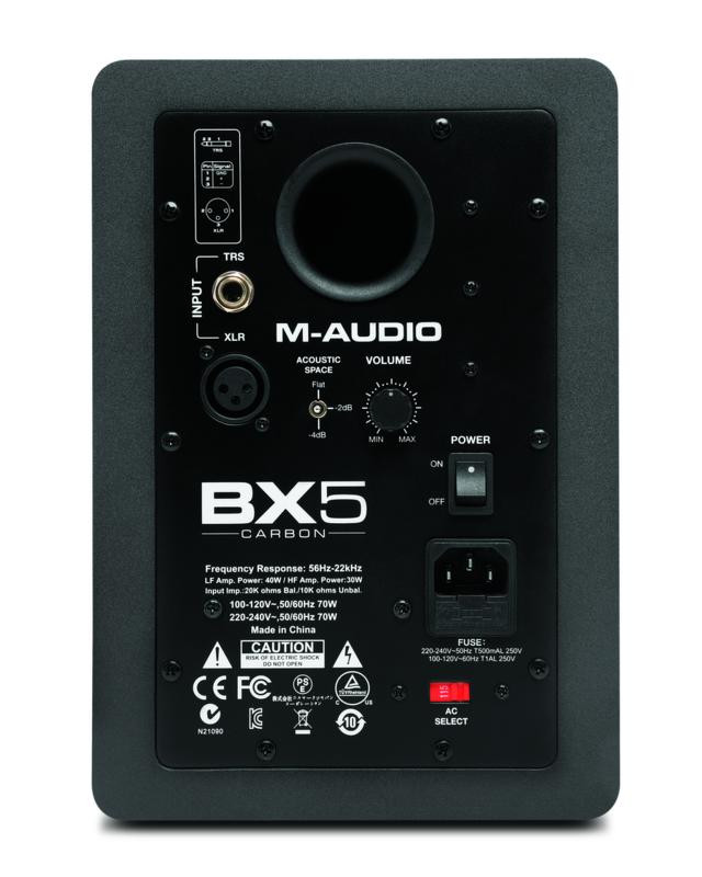 Acoustic ControlMixing doesn't occur in a vacuum. Your listening environment influences your mixing decisions and, ultimately, the sound of your music. The BX5 Carbon's Acoustic Space Control, a series of calibration switches, helps provide optimal acoustic conditions for tracking, mixing, and monitoring anywhere. Adapt the BX5 Carbon to any mixing environmentfrom bedrooms to basements to professional studioswithout compromising frequency detail or stereo image. The result is a flexible monitoring setup for the most demanding mixing environments.