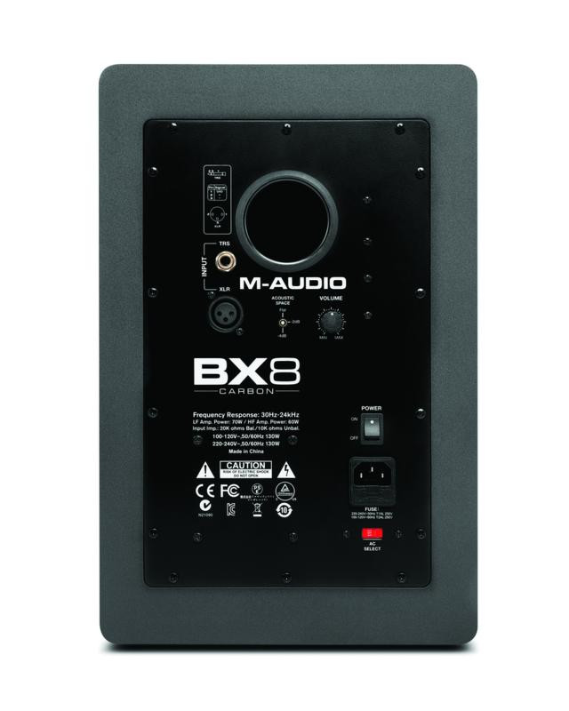 Acoustic ControlMixing doesn't occur in a vacuum. Your listening environment influences your mixing decisions and, ultimately, the sound of your music. The BX8 Carbon's Acoustic Space Control, a series of calibration tools, helps provide optimal acoustic conditions for tracking, mixing, and monitoring anywhere. Adapt the BX8 Carbon to any mixing environmentfrom bedrooms to basements to professional studioswithout compromising frequency detail or stereo image. The result is a flexible monitoring setup for the most demanding mixing environments.