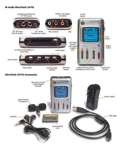 The MicroTrack is a rugged high-fidelity mobile 2-channel digital recorder that records WAV and MP3 files to CompactFlash or microdrivesperfect for everything from professional field recording to corporate meetings, training, education and worship.