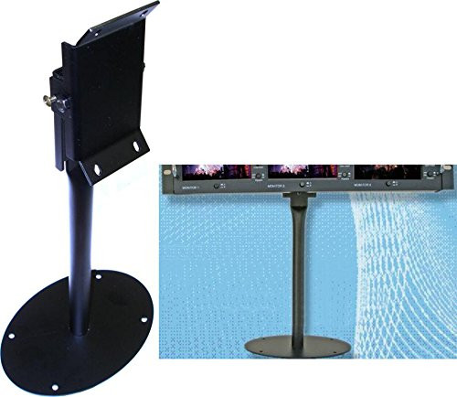 Mountable stand for the MConnection MC100NP triple LCD monitor video screen system. Quality steel construction. Stand is about 16" high which brings display about 14" higher to center. Base is approx. 7 7/8" x 5 1/2" w/ holes for mounting.