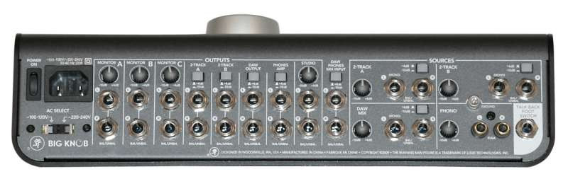 All the Right ConnectionsAlthough its shiny silver knob is a head-turning feature, Big Knob's rear panel is equally impressive. There you'll find three distinct Monitor outputs with individual level control; 2-Track A and 2-Track B stereo outputs with level selection switches; a DAW stereo output for your computer; a Studio output with level control; a Phones Mix input with level selection switch; 2-Track A and 2-Track B Stereo Source inputs with level control; a DAW Mix input from your computer with level control; and even a Phono input with level control for direct connection to your turntable.