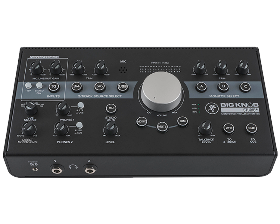 The Mackie Big Knob Studio+ is the centerpiece in project studios, live broadcast setups, pro studios and more. With easy input and monitor switching, award-winning Onyx' mic preamps, high-resolution USB recording and playback, and a dedicated amp-driven output for additional headphones, this Big Knob goes to eleven.