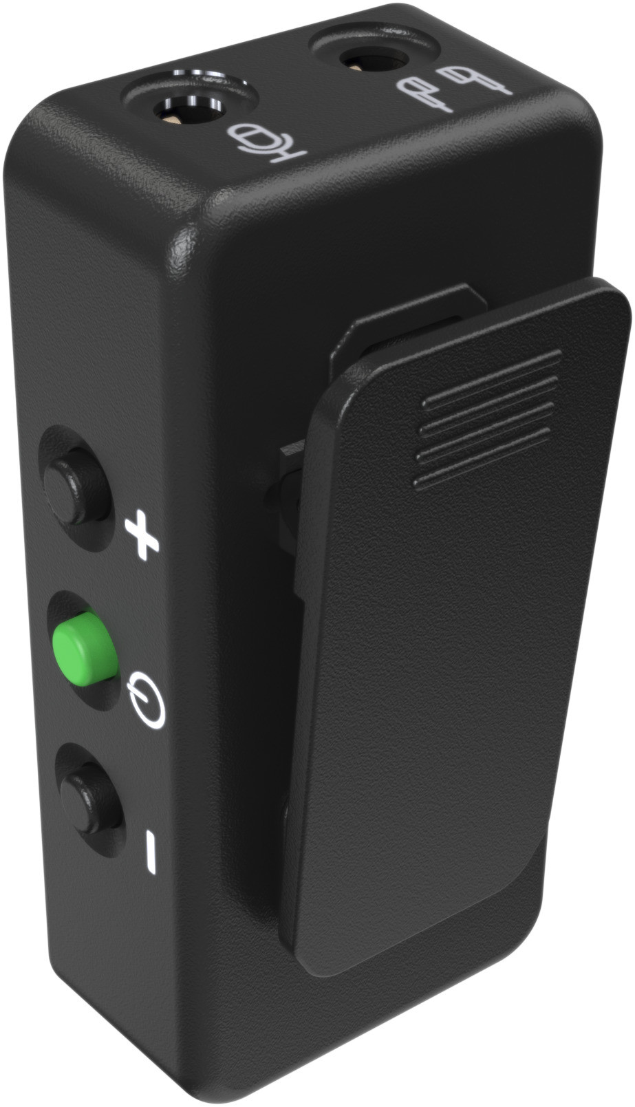 • Clip-on in-line amplifier provides high level output for higher quality audio and less noise