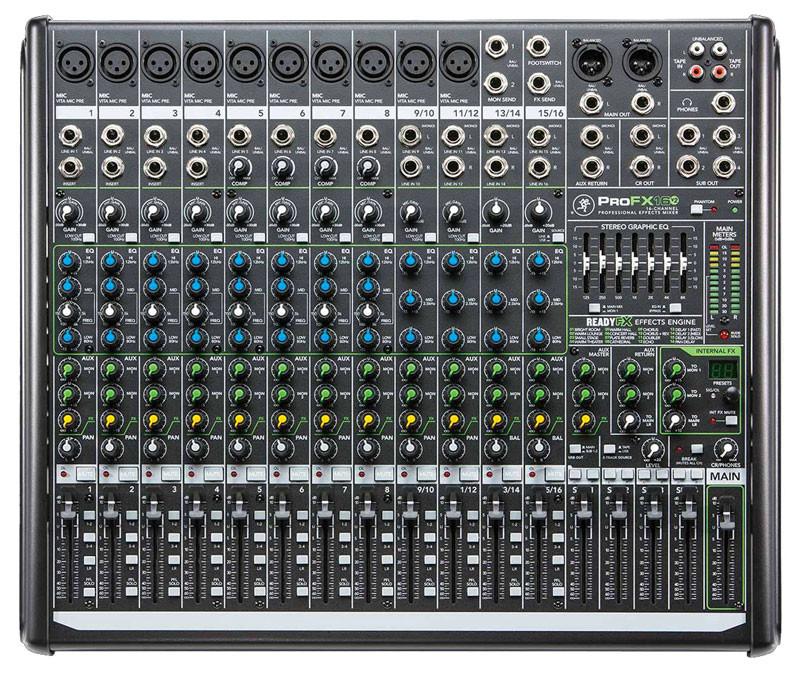The Mackie ProFX16v2 is a well-stocked audio toolkit. From critical tools like multi-band graphic equalization to smart features like channel inserts and footswitchable FX mute, ProFXv2 always has the tools you need.