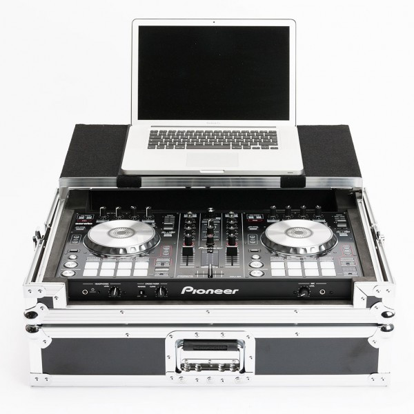 Customized to hold the Pioneer DDJ-SR2, DDJ-SR or DDJ-RR controller and a laptop. Crafted from 9 mm vinyl laminated plywood, sturdy aluminium profiles and heavy duty butterfly latches, it provides you with secure transport and workstation in one. Thanks to the integrated gliding laptop platform and the convenient cable access port, the setup is ready for action in no time at all.