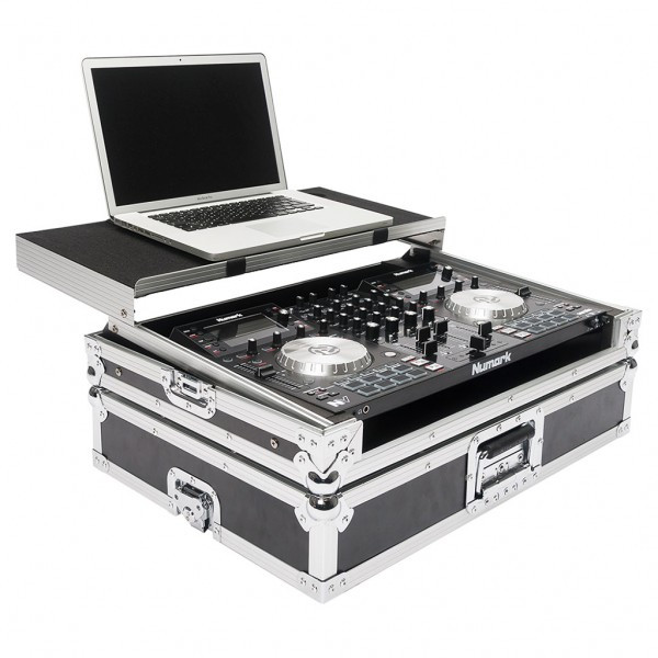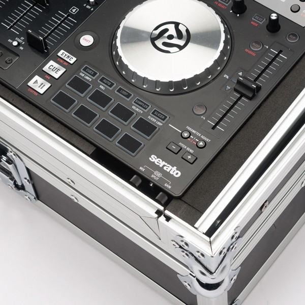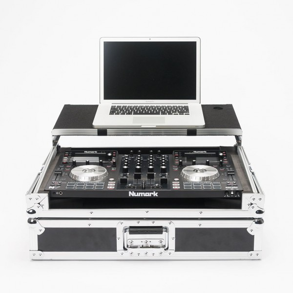 Customized to hold the Numark NV or NVII Serato DJ Controller and a laptop. Crafted from 9mm vinyl laminated plywood, sturdy aluminum profiles and heavy duty butterfly latches, it provides you with secure transport and workstation in one. Thanks to the integrated gliding laptop platform and the convenient cable access port, the setup is ready for action in no time at all.