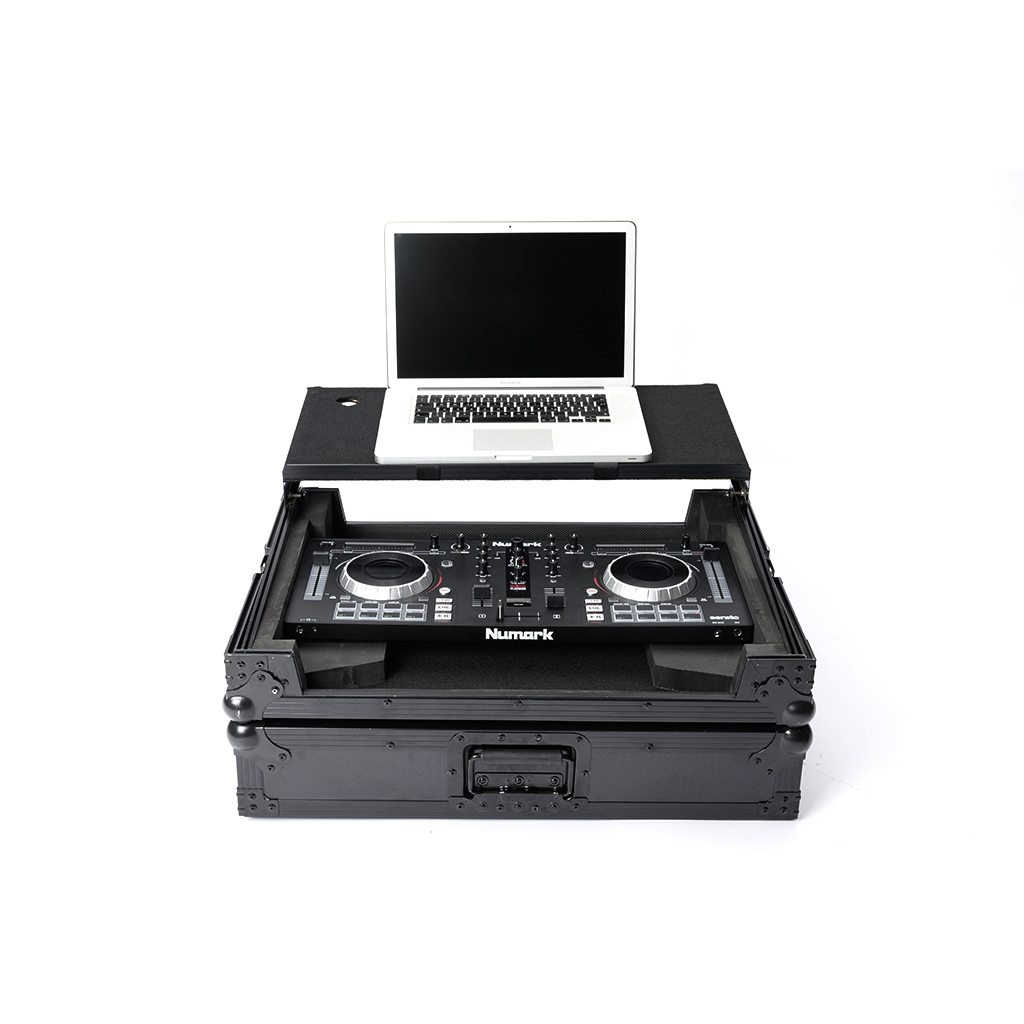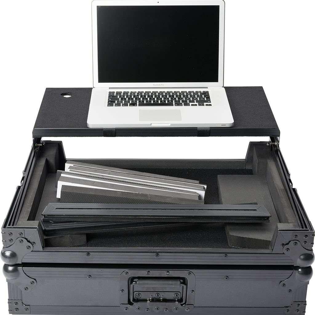 One size fits all! The new Magma MULTI-FORMAT Workstation XL PLUS is a heavy-duty road case for your DJ controller. It includes several foam pads in various sizes to accommodate most current large DJ controllers such as Pioneer DDJ-SR, Numark NV2, Numark Mixtrack Platinum, NI Kontrol S4/S5, Denon MC-4000 etc. Constructed with 9 mm laminated plywood and the new, extra-durable Honey Comb hexagon exterior surface, it also features rugged steel ball corners, solid butterfly lock latches and a strong recessed handle. Thanks to the integrated gliding laptop platform and the convenient cable access port, the setup is ready for action in no time at all.