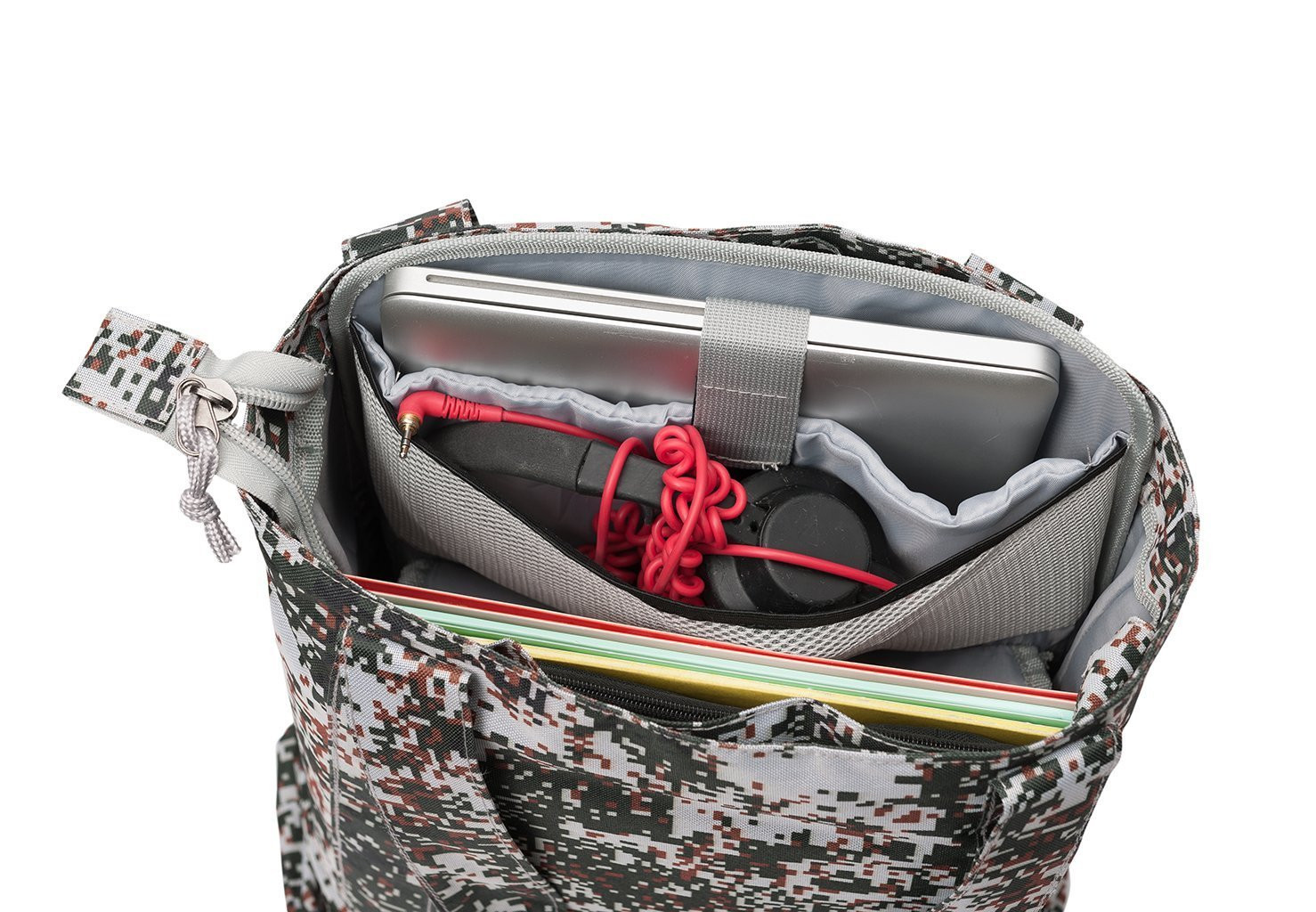 • Removable, padded laptop panel (up to 15") with separate storage pockets for headphones, sound card, cables etc.