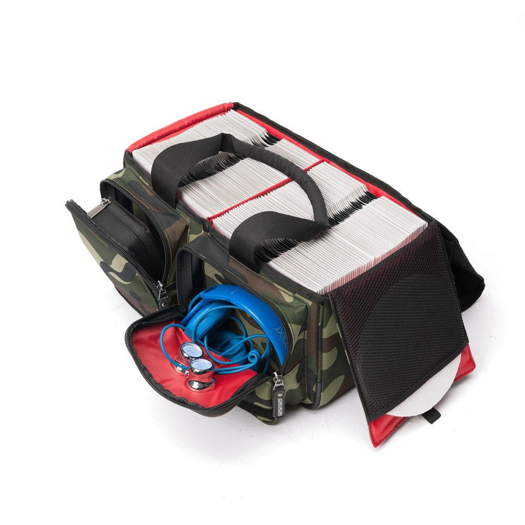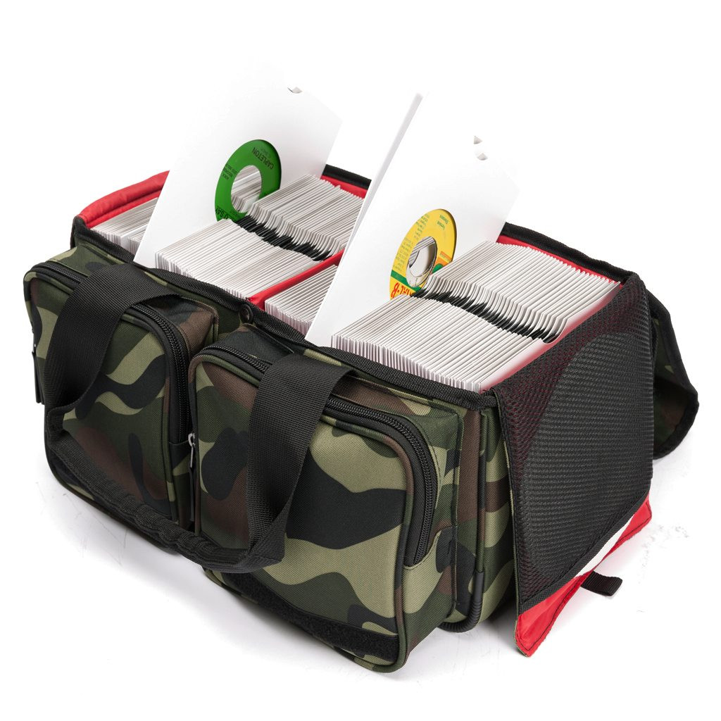 Dedicated to all 45 enthusiasts and vinyl pros, the new MAGMA 45 RECORD-BAG 150 offers an extremely compact and stylish way to travel with up to 150 x 7-inch records. The fully padded main body features a reinforced semi-hard PVC-body, providing excellent protection and a stable fit even in the pre-selected position of the records. The main compartment is divided into two equal sections, so records can be organized front-to-back or side-to-side.