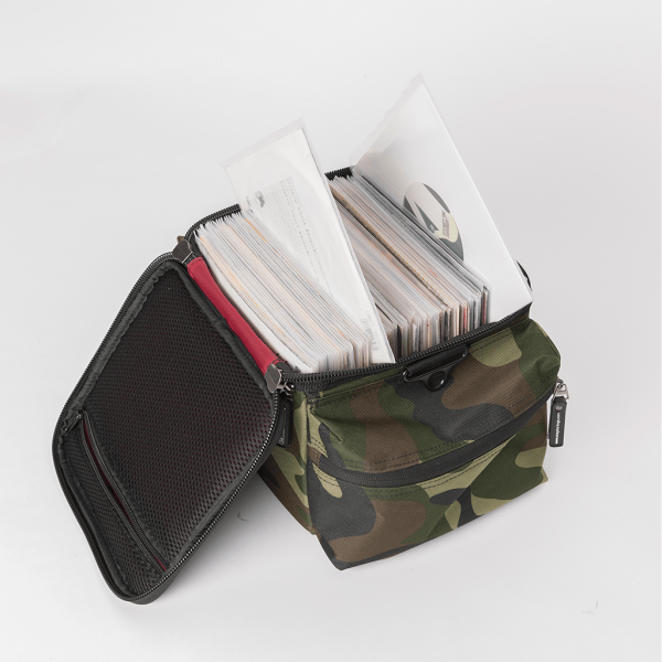 The MAGMA 45 RECORD-BAG 100 perfectly holds up to 100 x 7-inch records. The fully padded main body features a reinforced semi-hard PVC-body, providing excellent protection and a stable fit even in the pre-selected position of the records. Additional accessories such as headphones, a needle-case and 45-adapters can be stored in the two zippered side-pockets.