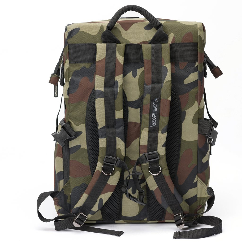 • Padded back panel with airflow system, ergonomic backpack straps and chest straps