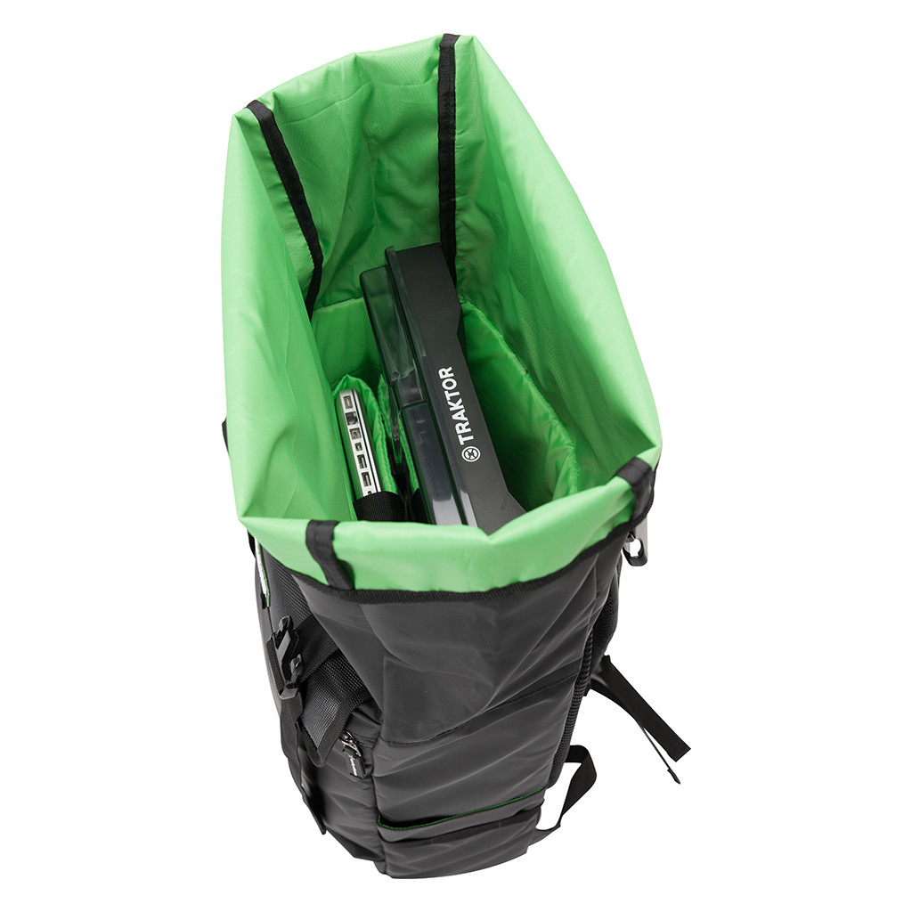 The RIOT CONTROL-PACK LITE was developed especially for DJs and musicians who frequently travel with a DJ-controller or other production equipment looking to maintain a lite and compact profile. The padded main compartment features an integrated laptop-sleeve and a height-adjustable rolltop closure for ultimate storage flexibility. There is space to support models such as Pioneer DDJ-800, DDJ-SR2, NI Kontrol S4MK3 or Roland DJ-707M, etc., along with a laptop and accessories. Smaller gear such as headphones, cables and power supplies can be easily stored in the large front pocket.