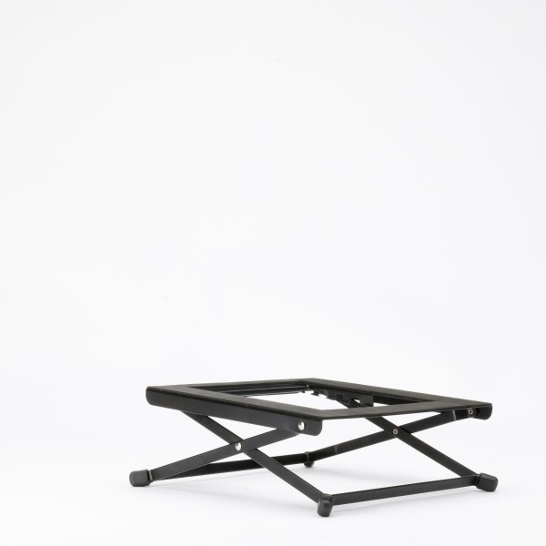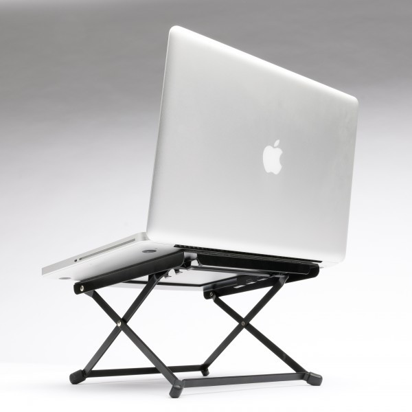 The Laptop Stand Riser is a compact, flat-tolding, and lightweight DJ stand. It is angled slightly forward and has a non-slip surface and feet to insure stability during your performance. It has a 4-way adjustable height to to fit various gear and setups including laptops (13-17in) and compact controllers like NI Maschine, Novation Launchpad or Akai MPD-18, and includes a carrying pouch with zipper.