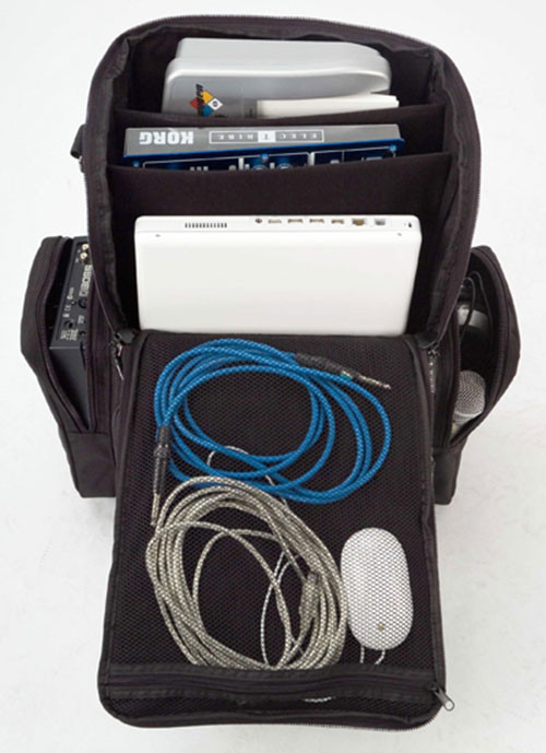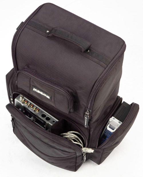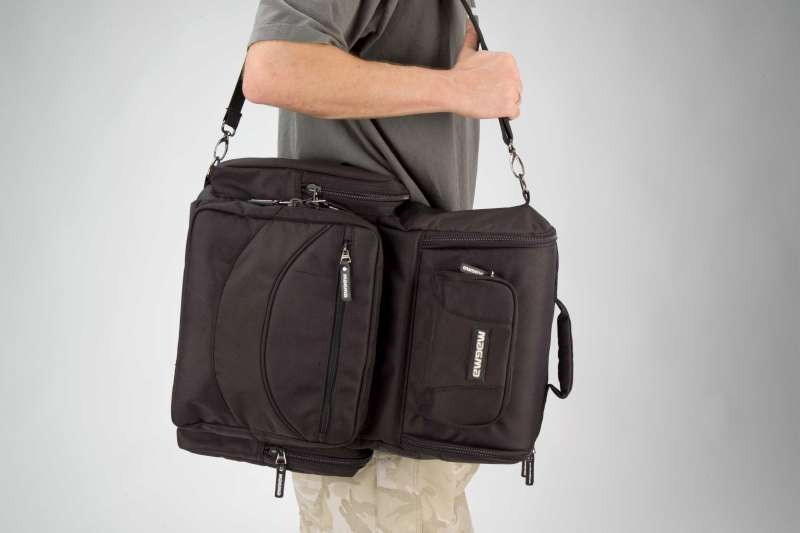 Developed for musicians, producers & DJs on the road With the Magma Studio/Gig-Bag 25, musicians, producers and DJs can now conveniently transport their mobile studio and live equipment to their studio-sessions or live gigs. It holds for example a 17in Laptop, a large DJ-Controller (TRAKTOR S4, VMS4, DN-MC 6000), MIDI/USB 25 keyboard, a drumcomputer (TR 808/909), one or two audio interfaces and other accessories.