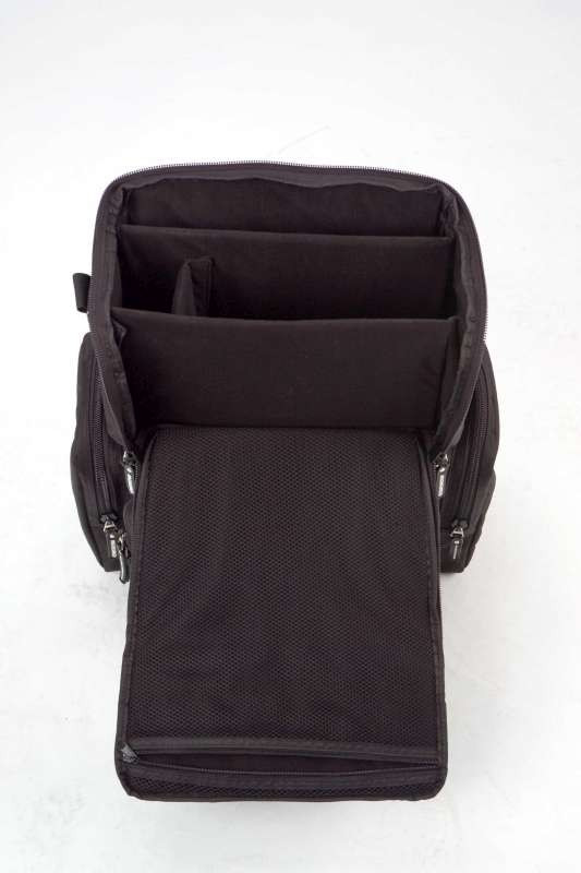 This backpack is equipped inside with soft fleece padding, that prevents particularly the scratching of the devices. The detachable dividers allow to create a specific interior layout with variable spaces, so that all portable components, can be stored securely.