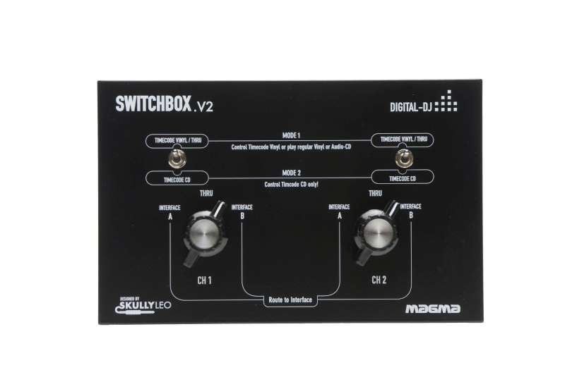With the MAGMA SWITCHBOX Digital-DJ, two digital DJ-Systems like Serato and Final Scratch can be plugged simultaneously to a mixer (also Battle-Mixers with only 2 x Phono/Line inputs) and can be combined with a usual DJ setup. That means that it is possible to constantly switch between the signal of the turntable (THRU), the CD-player (THRU) or two digital DJ setups (A or B) with two Phono/Line inputs of the mixer.