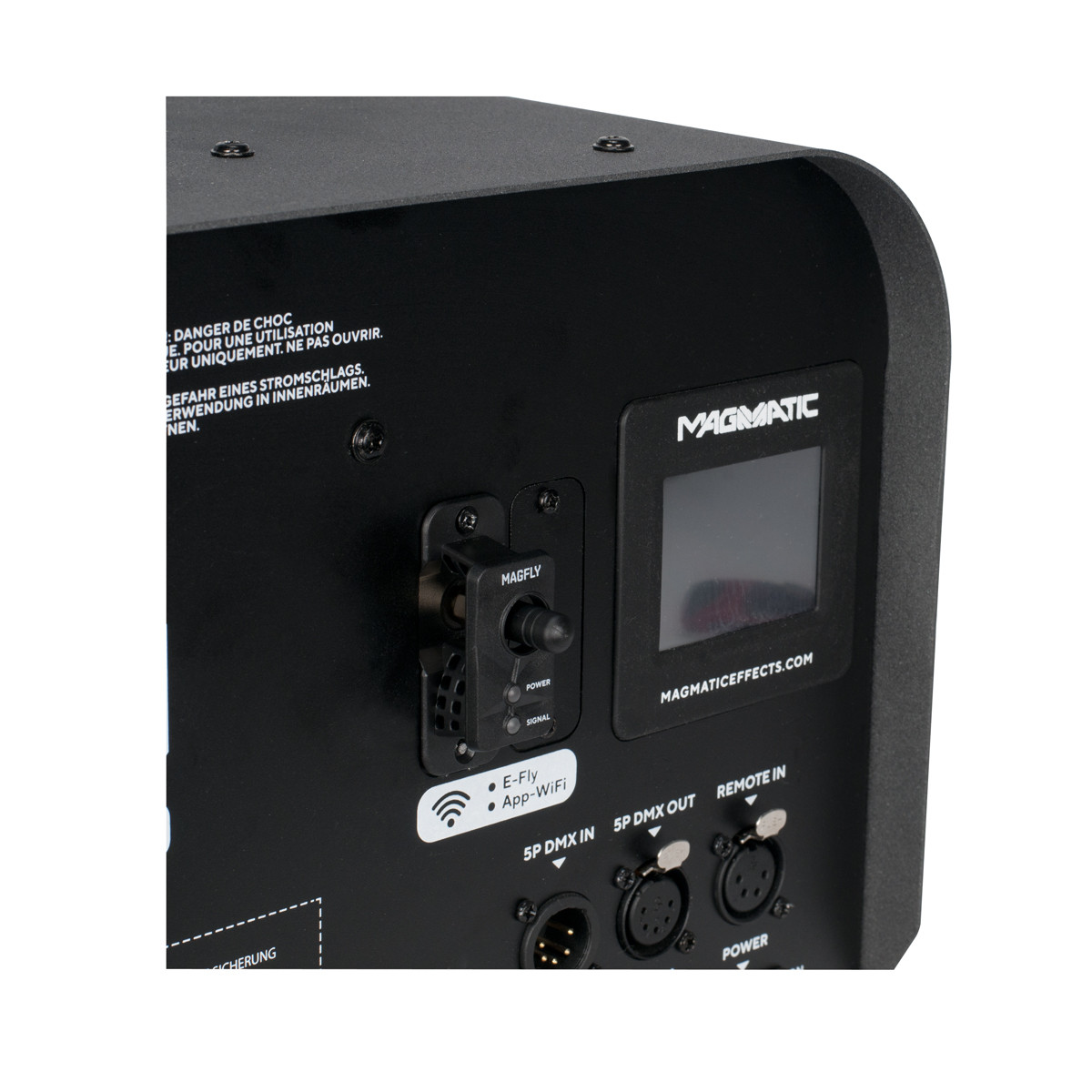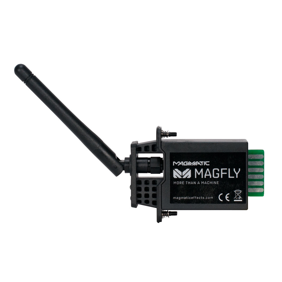 MAGFLY is a wireless DMX receiver card compatible with all Magmatic foggers, hazers, snow machines, CO2 simulators, low lying, and bubble machines. Compatible with Magmatic Magfly and Elation Efly transceivers.